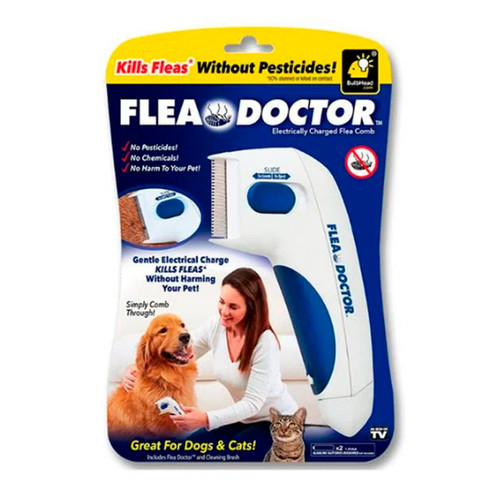 Flea Doctor es un peine eléctrico antipulgas para perros y gatos que elimina pulgas y garrapatas al contacto sin usar pesticidas. Su tecnología de carga suave detecta y elimina parásitos de forma segura, incluso en mascotas con pelaje largo o piel sensible. Ideal para uso doméstico, ayuda a prevenir infestaciones y mantener la higiene del animal.