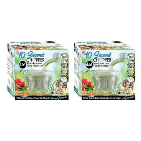 Descripción del producto: El 10 Second Chopper es un utensilio de cocina multifuncional 4 en 1 que permite picar, batir, mezclar y preparar ensaladas en segundos, sin necesidad de electricidad. Su diseño compacto y ergonómico incluye cuchillas afiladas y un sistema de cuerda retráctil que facilita el procesamiento rápido de alimentos. Ideal para frutas, verduras, hierbas, frutos secos y más.